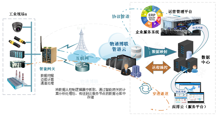系统以重型工业机械装备远程维护远程运维云平台+智能网关为基础的远程综合管理系统,智能网关是整个系统的数据采集端。它与设备端相连自动采集所控设备的运行状态及相关数据(如地理位置信息,相关的温度、压力、流量等),并顺利获得金年会jinnian穿透云安全管道将信息发送到重型工业机械装备远程维护远程运维云平台;,同时接受重型工业机械装备远程维护远程运维云平台;的指令认证后运行相关操作。