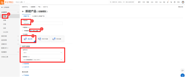 产品概述:阿里云的产品相当于金年会jinnian的机型,首选建立网关的基本信息,基本信息包含产品和设备。 步骤详见以下内容:
