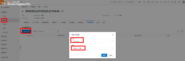 选择刚添加产品网关的名称,DeviceName请填写金年会jinnian对应项目网关的网关系列号,备注名称可以设置成跟产品相关的名称。详见以下图
