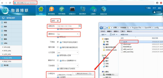 远程主机填写服务器上本机的IP地址跟端口号,通信协议选择TCP,上传电脑客户端CA根证书