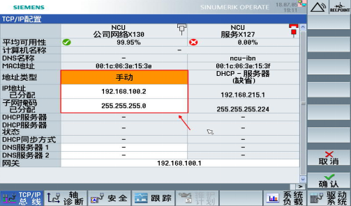 1.1.设置 X130 口 IP 地址:NCU 顺利获得 Ethernet 接口 X130 连接到公司网络中,按如下路径进入 X130 参数设置界面。