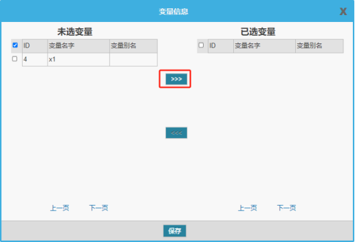 将未选变量下的变量添加到已选变量中,点击保存。