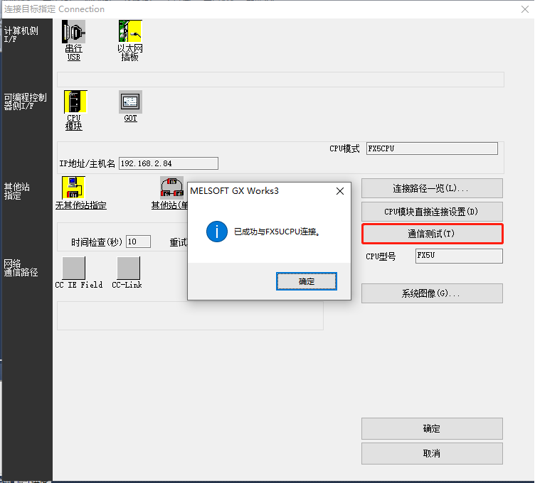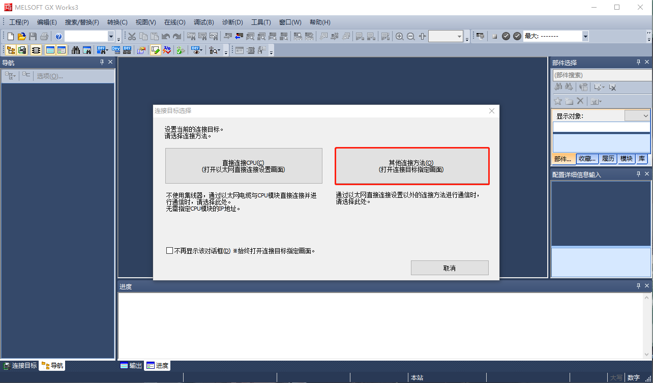 2、打开MELSOFT GX Works3,选择控制器系列,设置“其他连接方式”通讯。