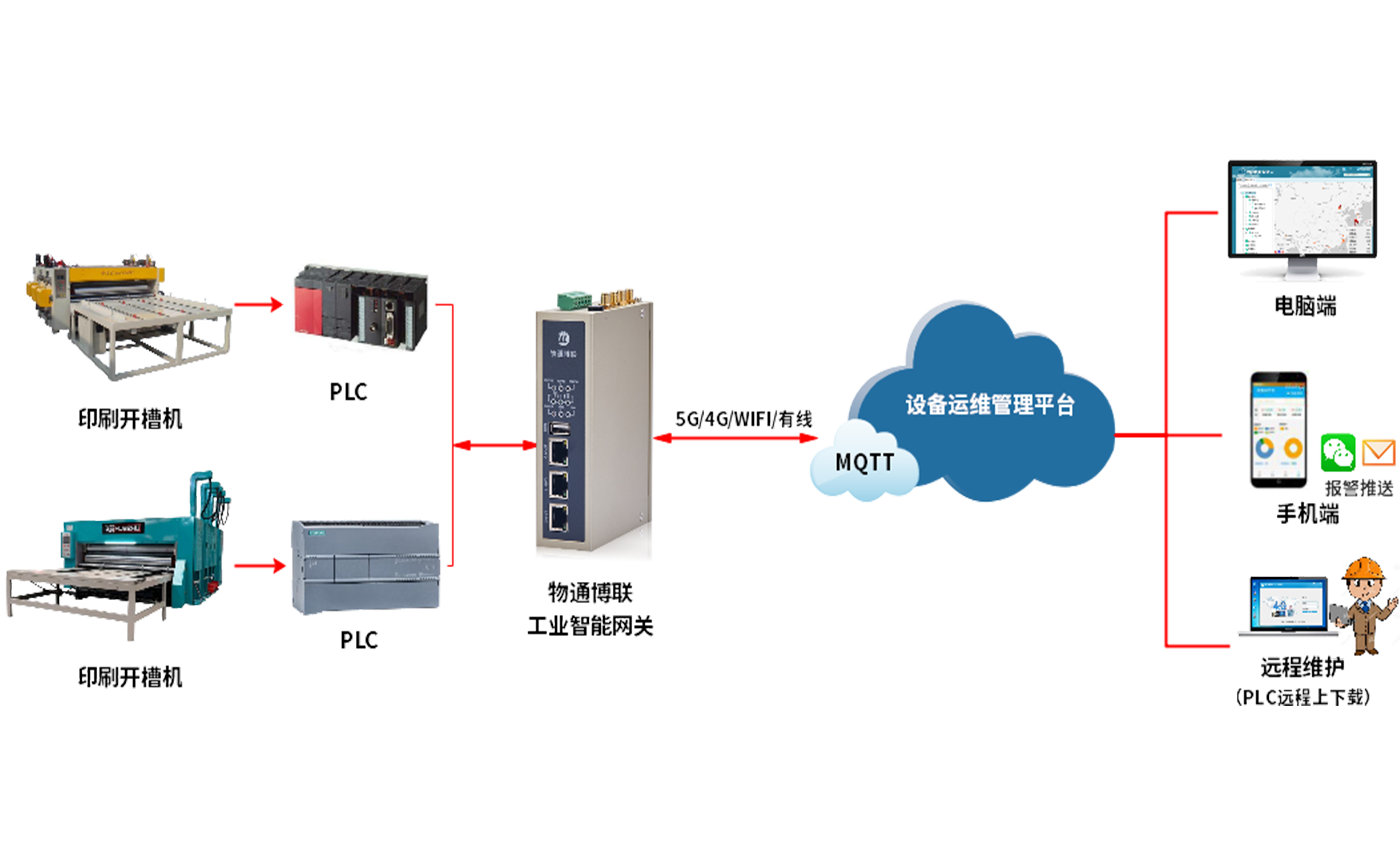 金年会jinnian利用WG系列工业智能网关作为连接设备和监控系统的桥梁,实现印刷机械设备数据的远程监控和维护,为印刷企业给予更加智能化的印刷机械设备远程监控智能运维解决方案。