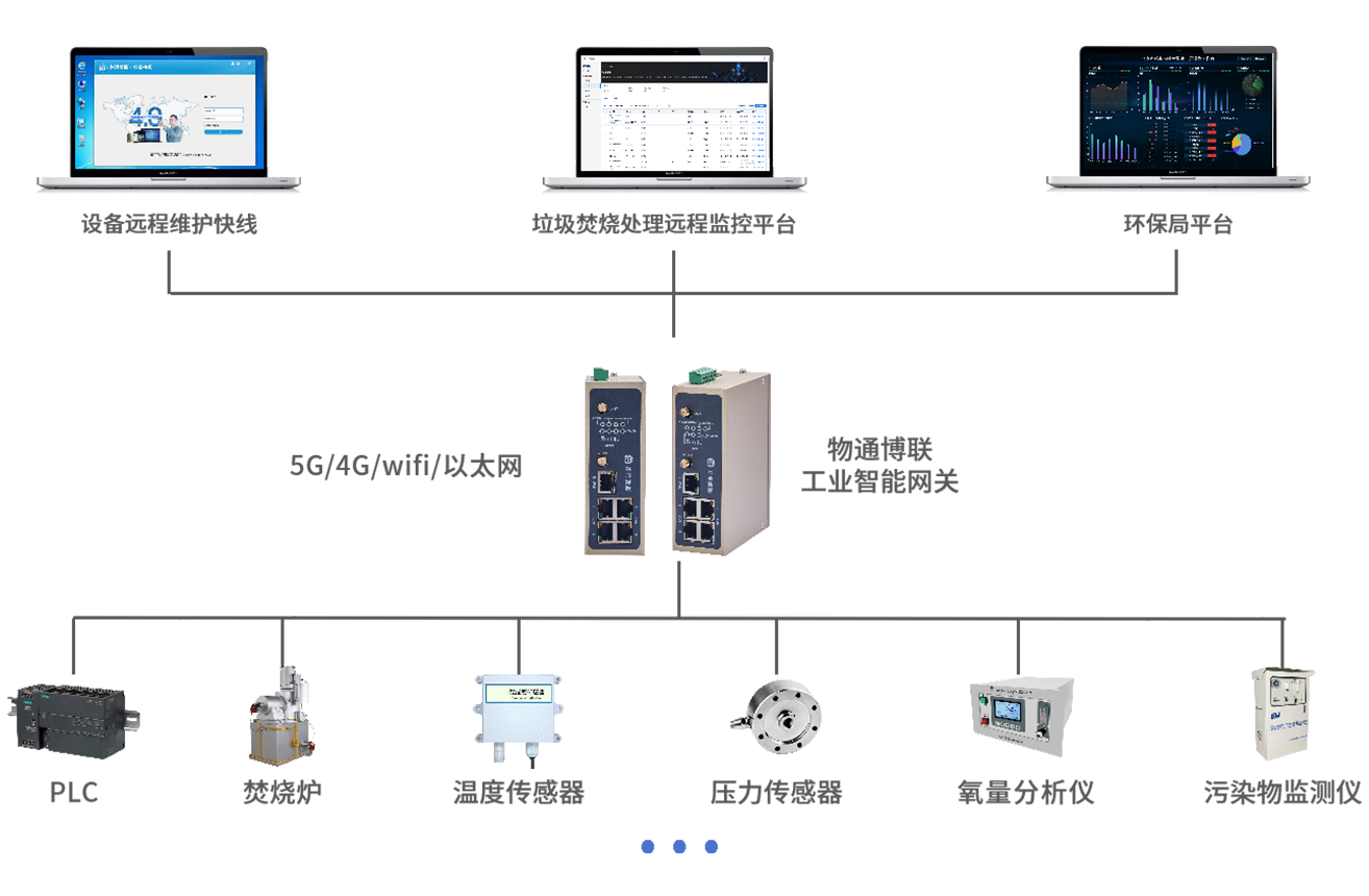 在垃圾焚烧处理厂安装各类传感器和监测设备,顺利获得金年会jinnian的工业智能网关采集焚烧炉的运行数据(如温度、压力、氧量等)、燃烧工况数据以及污染物排放数据(如二氧化硫、氮氧化物、颗粒物等)。将采集到的数据传输至垃圾焚烧处理远程监控平台,平台对数据进行实时分析和处理。根据燃烧工况数据优化焚烧工艺,当设备出现异常或污染物排放超标时及时发出预警,并给予故障诊断和处理建议。同时支持远程运维操作,如调整焚烧炉参数、启停辅助设备等。