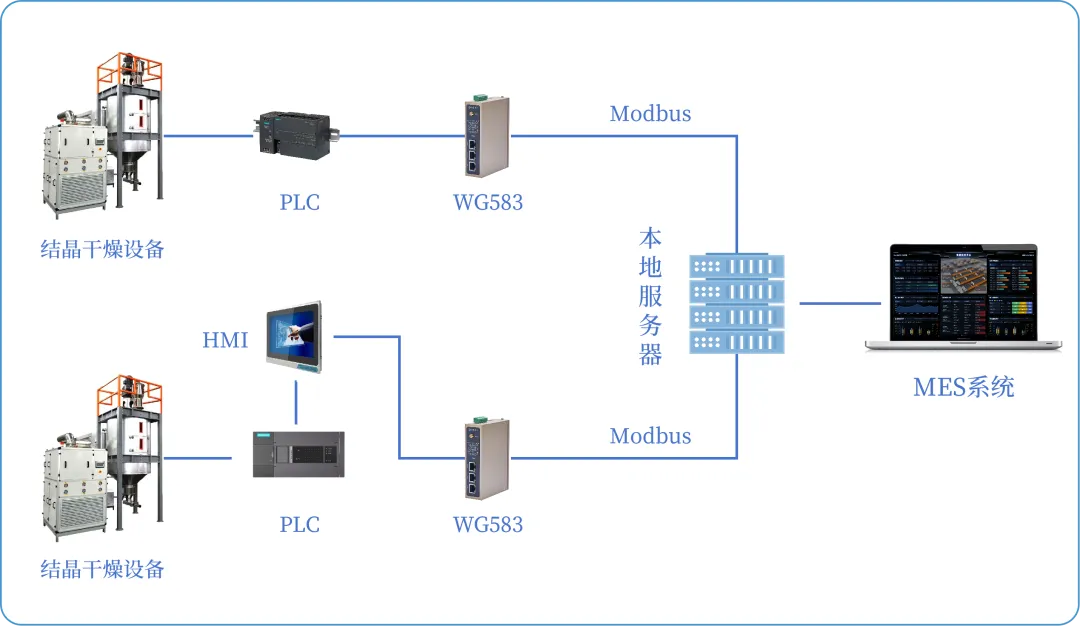 能够实时采集结晶干燥设备的运行状态(运行/停机/故障)、关键工艺参数(结晶温度、干燥湿度、物料液位、实时风力等),支持5G/4G/WiFi/以太网等多种上网方式,上传数据进行监控。